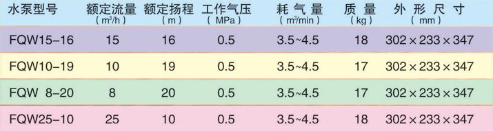 FQW型礦用風(fēng)動(dòng)潛水泵(原BQF、FWQB型)是我公司自行研制開發(fā)的一種新產(chǎn)品,本產(chǎn)品采用轉(zhuǎn)子與泵體同軸聯(lián)結(jié)的機(jī)械產(chǎn)品,采用立式機(jī)構(gòu)、下泵式。執(zhí)行標(biāo)準(zhǔn):Q/JNAT001-2010。煤礦用風(fēng)動(dòng)潛水泵結(jié)構(gòu)緊湊,移動(dòng)、裝拆、維修方便。泵體渦道采用節(jié)能水力模型,葉輪特殊設(shè)計(jì)。該水泵具有排污水能力強(qiáng),流量大,揚(yáng)程高等優(yōu)點(diǎn)。FQW型系列水泵適用于含有瓦斯與煤塵爆炸危險(xiǎn)場所排水作業(yè),可廣泛用于煤礦井下任何作業(yè)面,輸送含有煤粉,泥沙顆粒的地下水,使用安全、可靠,并有效地改善現(xiàn)場空氣質(zhì)量。